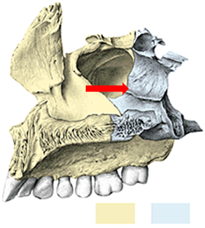 Hueso par, situado en la parte inferior de las fosas nasales. Se encuentra en la parte inferior de las fosas nasales, la cual contribuyen a formar.